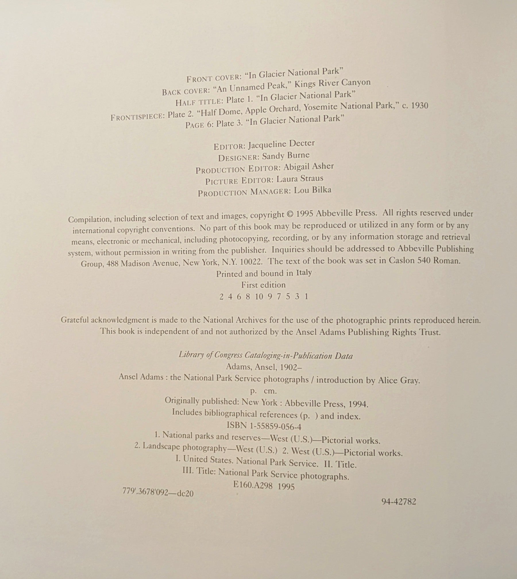 ANSEL ADAMS "THE NATIONAL PARK SERVICE PHOTOGRAPHS" FIRST EDITION 1995