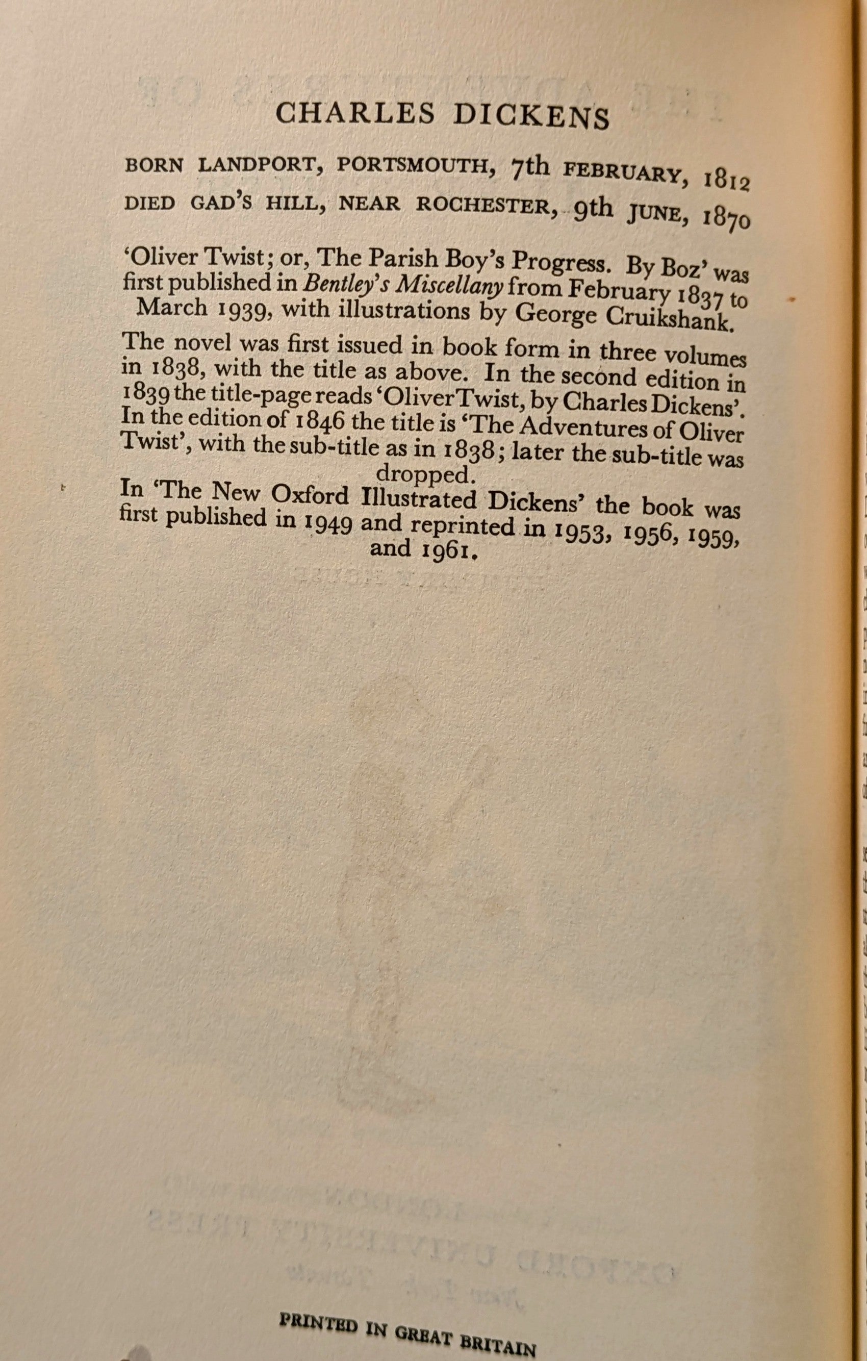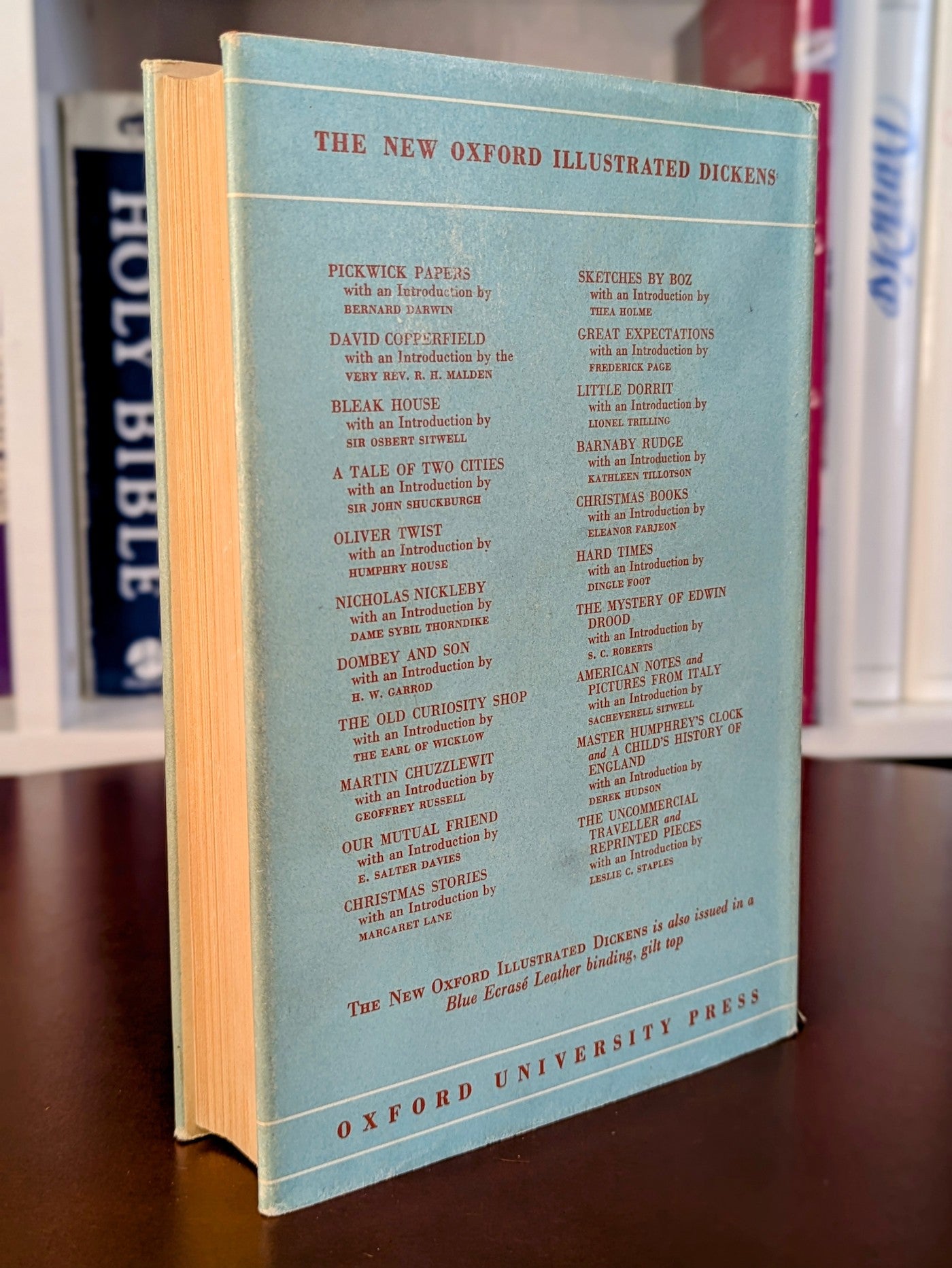 The beloved works of Charles Dickens were originally written in 19th century England. Beginning in 1947, Oxford University undertook a project to reproduce a 21 volume set of Dickens’ works titled “The New Oxford Illustrated Dickens”. It was released in both leather and cloth bound covers. To no surprise it was a success leading to multiple print runs. In 1987, forty years after the initial project, Oxford University brought back the “Oxford Illustrated Dickens”, this time with new design covers.