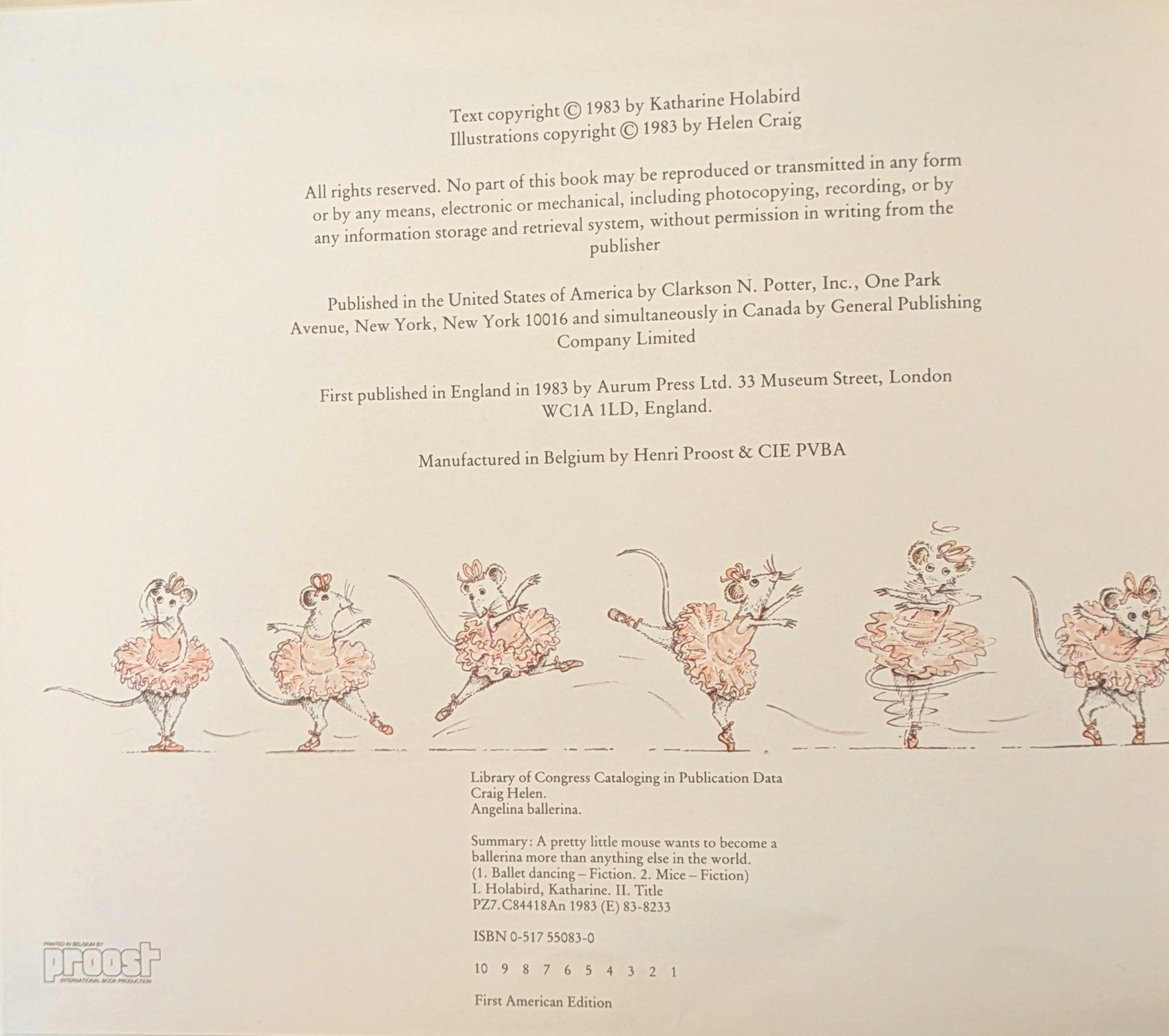 HELEN CRAIG "ANGELINA BALLERINA" PICTUREBOOK FIRST US EDITION 1983