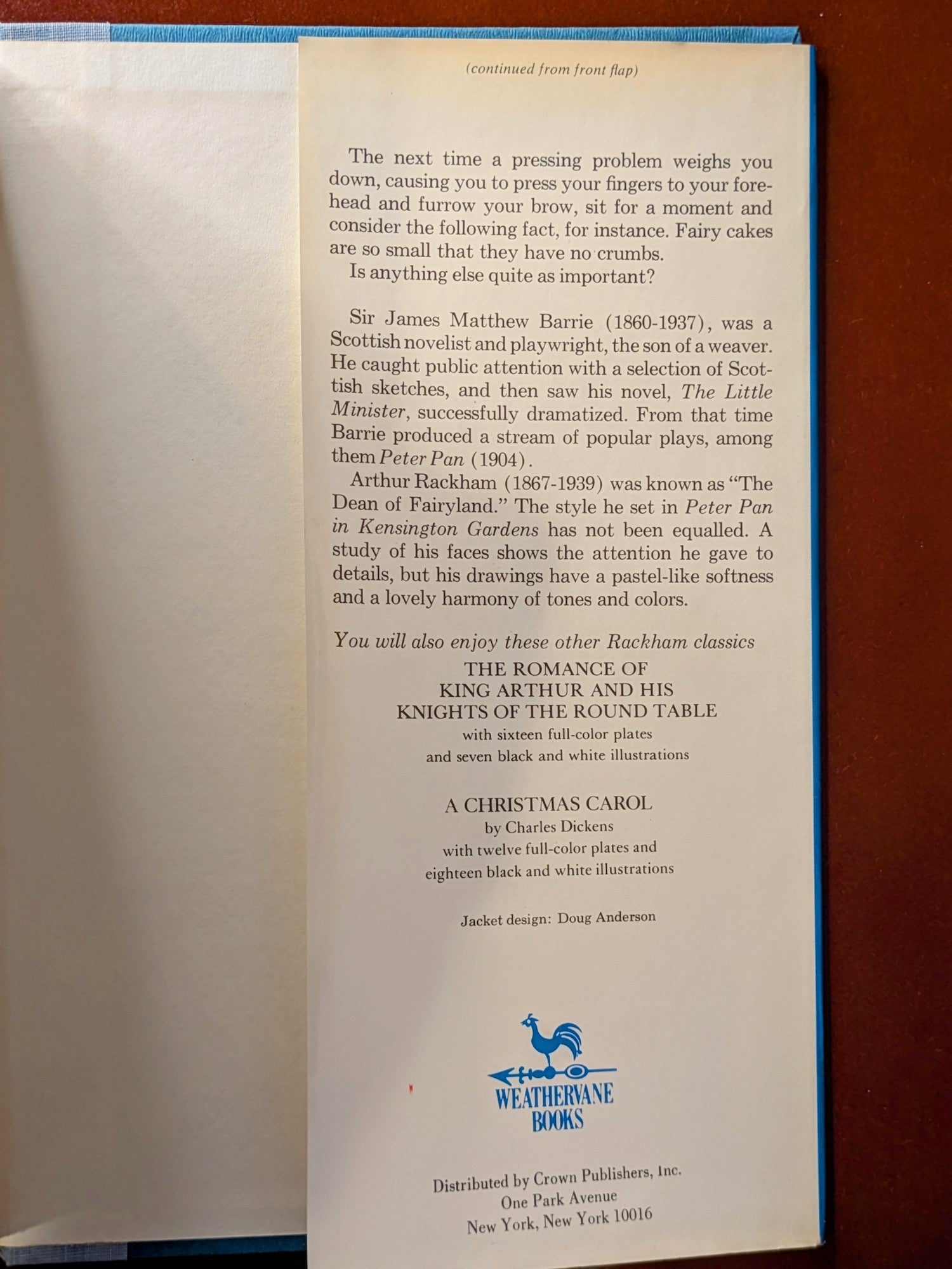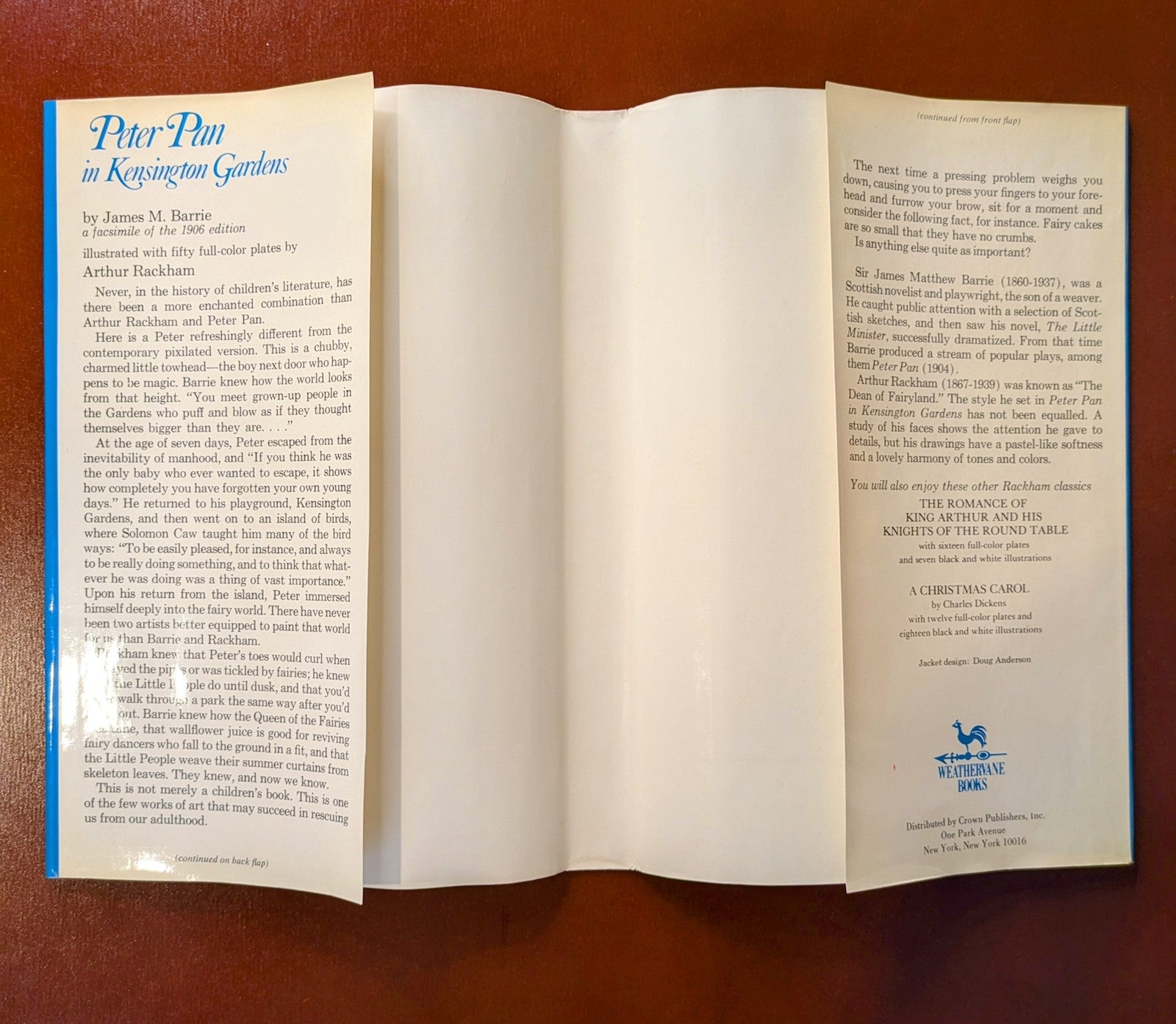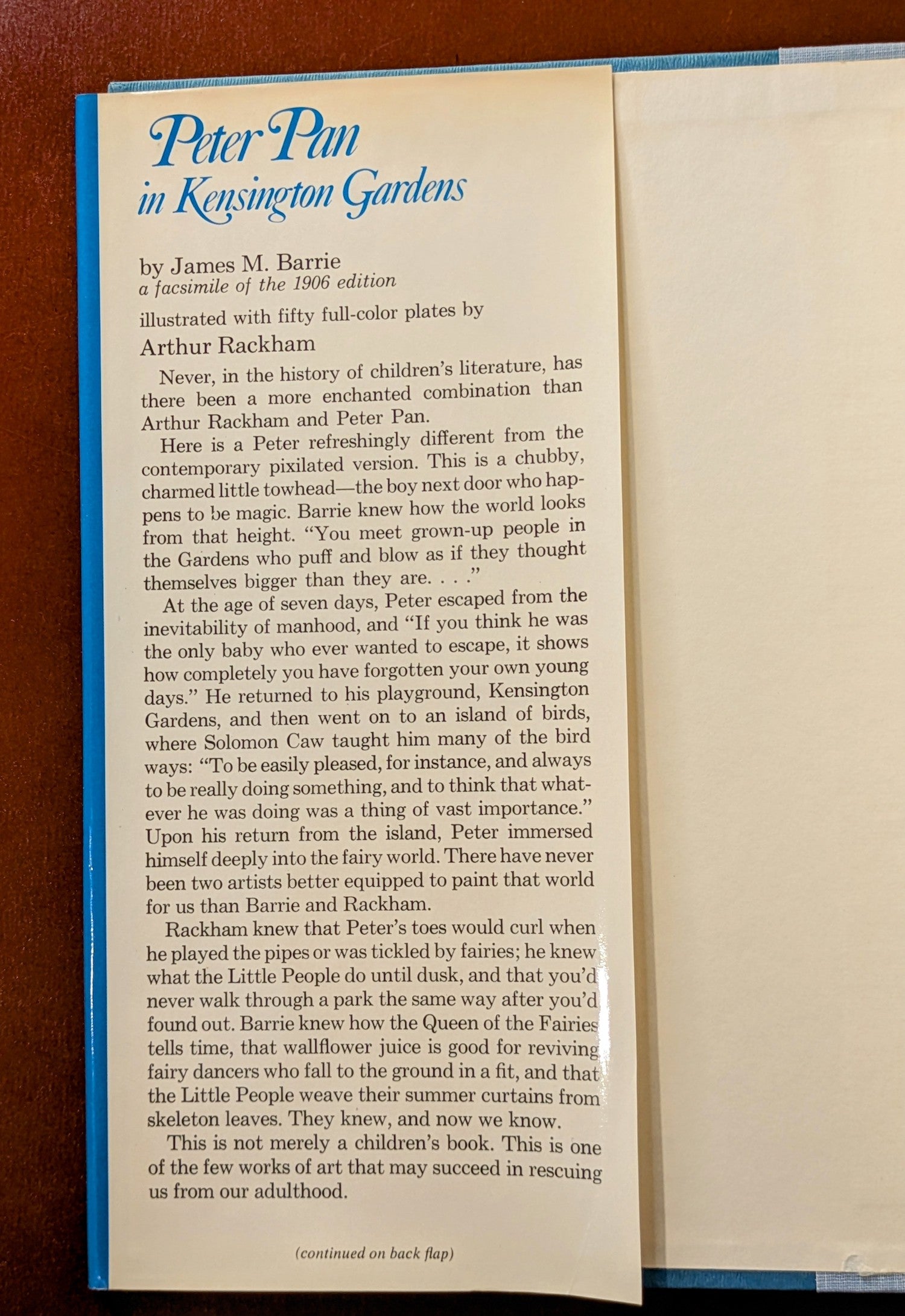 A 1970’s facsimile of the original 1906 edition by James M. Barrie, illustrated with 50 full color plates by Arthur Rackham. “This is not merely a children’s book. This is one of few works of art that may succeed in rescuing us from our adulthood.”