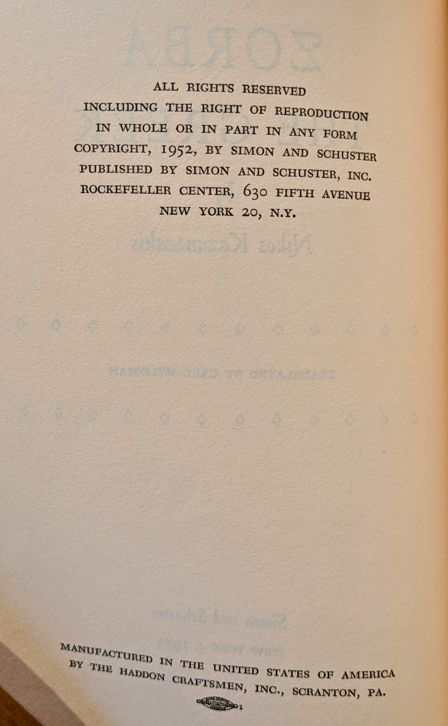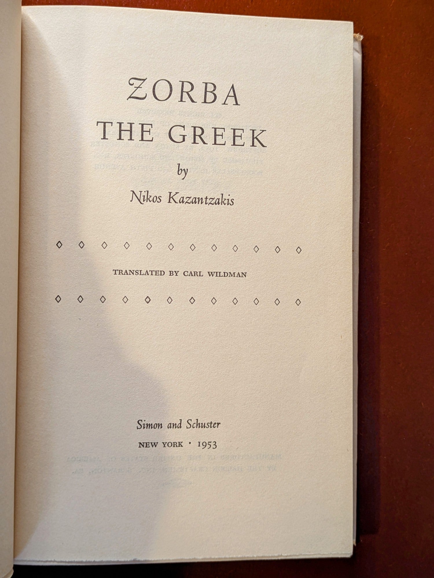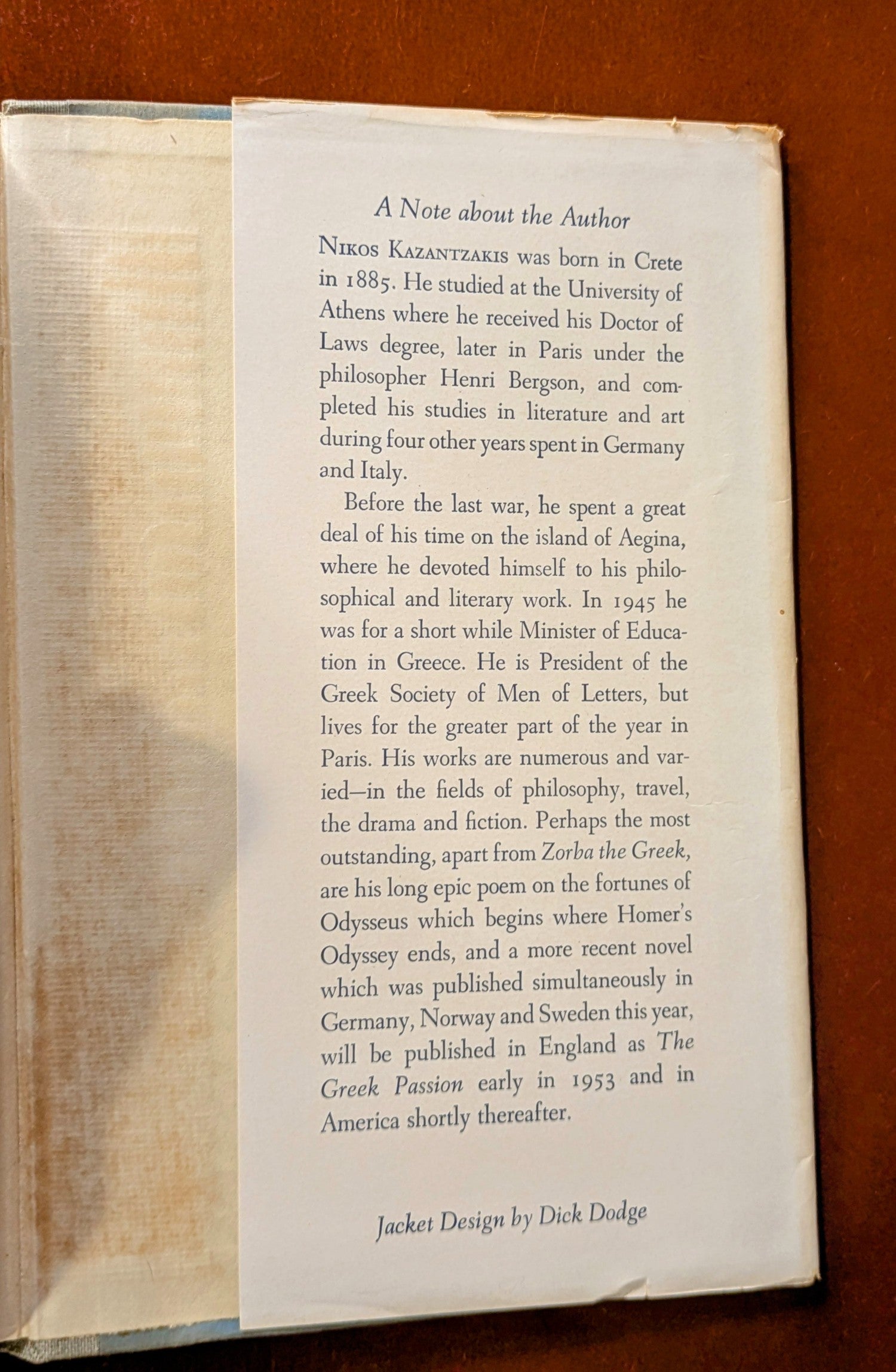 NIKOS KAZANTZAKIS "ZORBA THE GREEK" FIRST US BOOK CLUB EDITION 1953