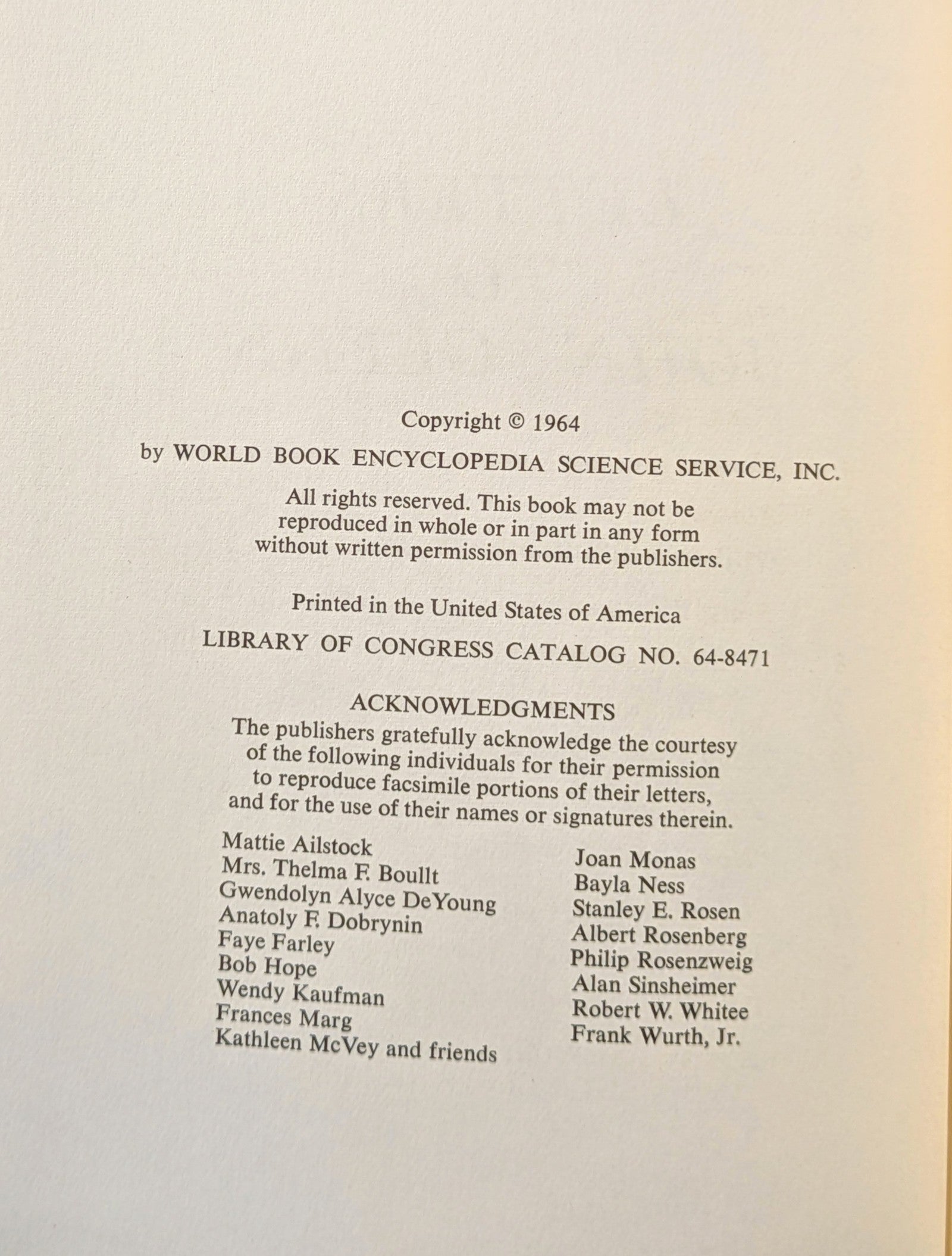 Published by World Book Encyclopedia Science Service, Inc and distributed by Doubleday and Co., 1964