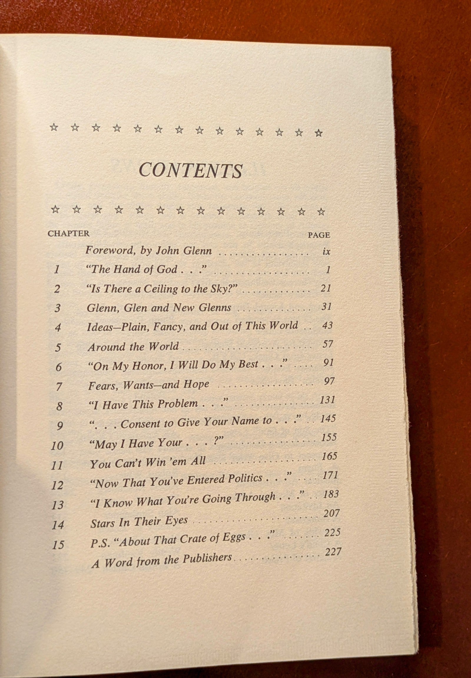 "I LISTENED TO YOUR HEART BEAT"- one postscript, in one letter, from one young girl, but it says volumes about the nearly a quarter of a million letters John Glenn has received since his orbital flight on February 20, 1962. It also says volumes about John Glenn's own reaction to this deluge of mail. Gwendolyn was not the only one. Nearly everyone in America and in all the nations of the world "listened to John Glenn's heart beat" on that eventful day. Here are 422 excerpts from John Glenn's morning mail, plus his comments. Here you may listen to the hearts of nations beat, and get to know better a truly amazing human being.” - Publisher