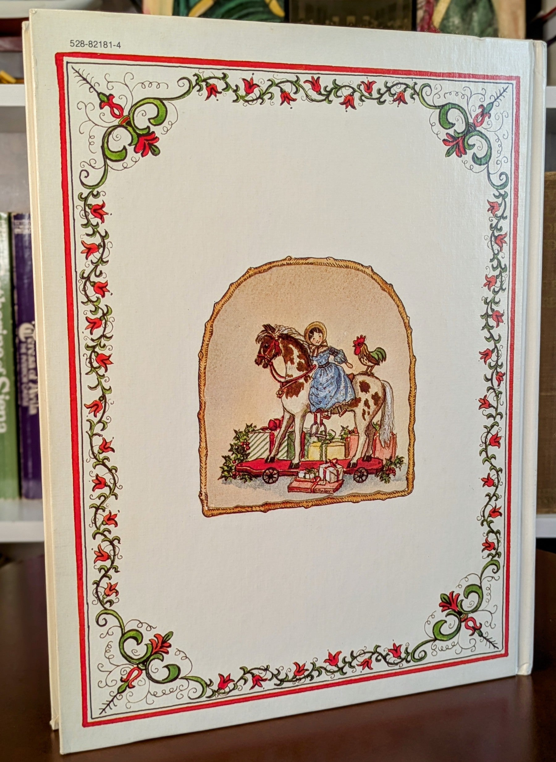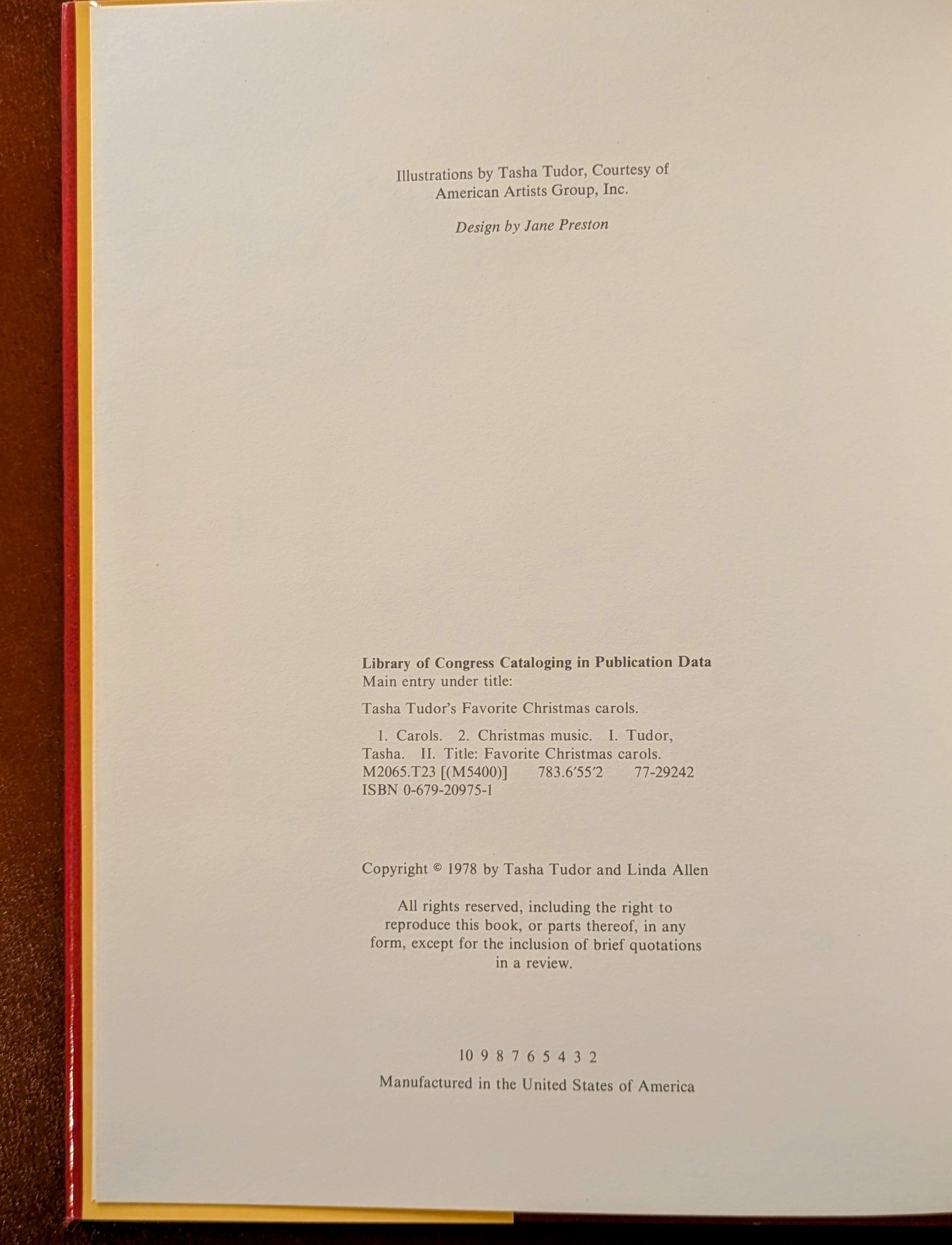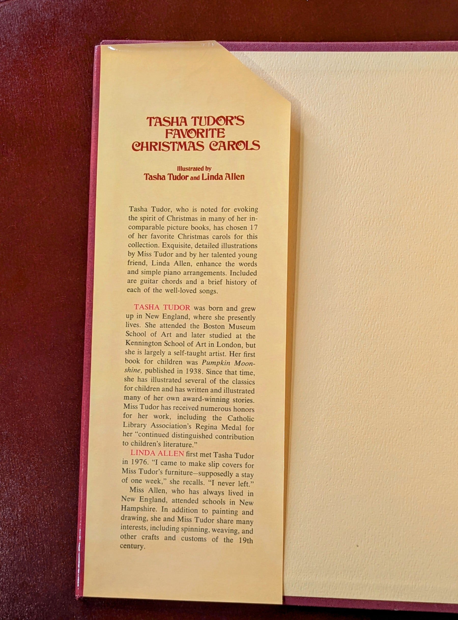 “Tasha Tudor, who is noted for evoking the spirit of Christmas in many of her in-comparable picture books, has chosen 17 of her favorite Christmas carols for this collection. Exquisite, detailed illustrations by Miss Tudor and by her talented young friend, Linda Allen, enhance the words and simple piano arrangements. Included are guitar chords and a brief history of each of the well-loved songs.” - The Publisher
