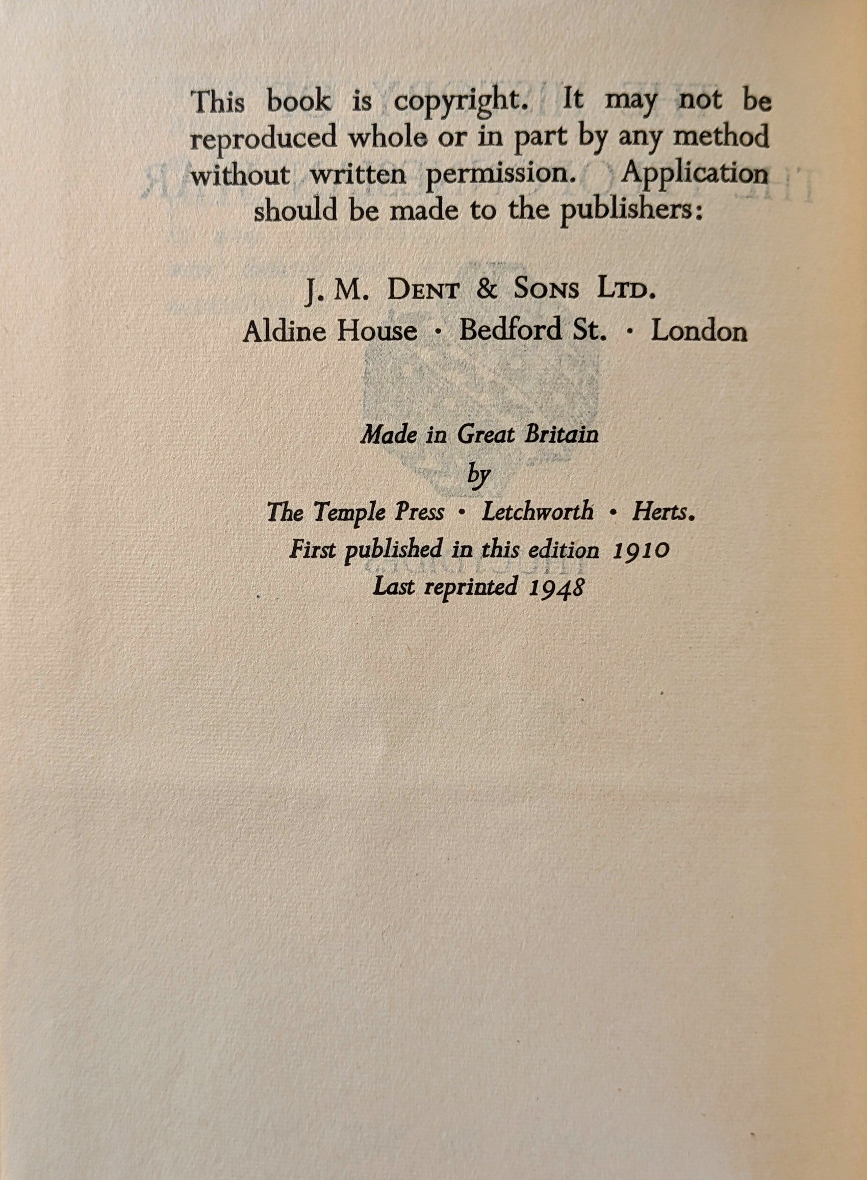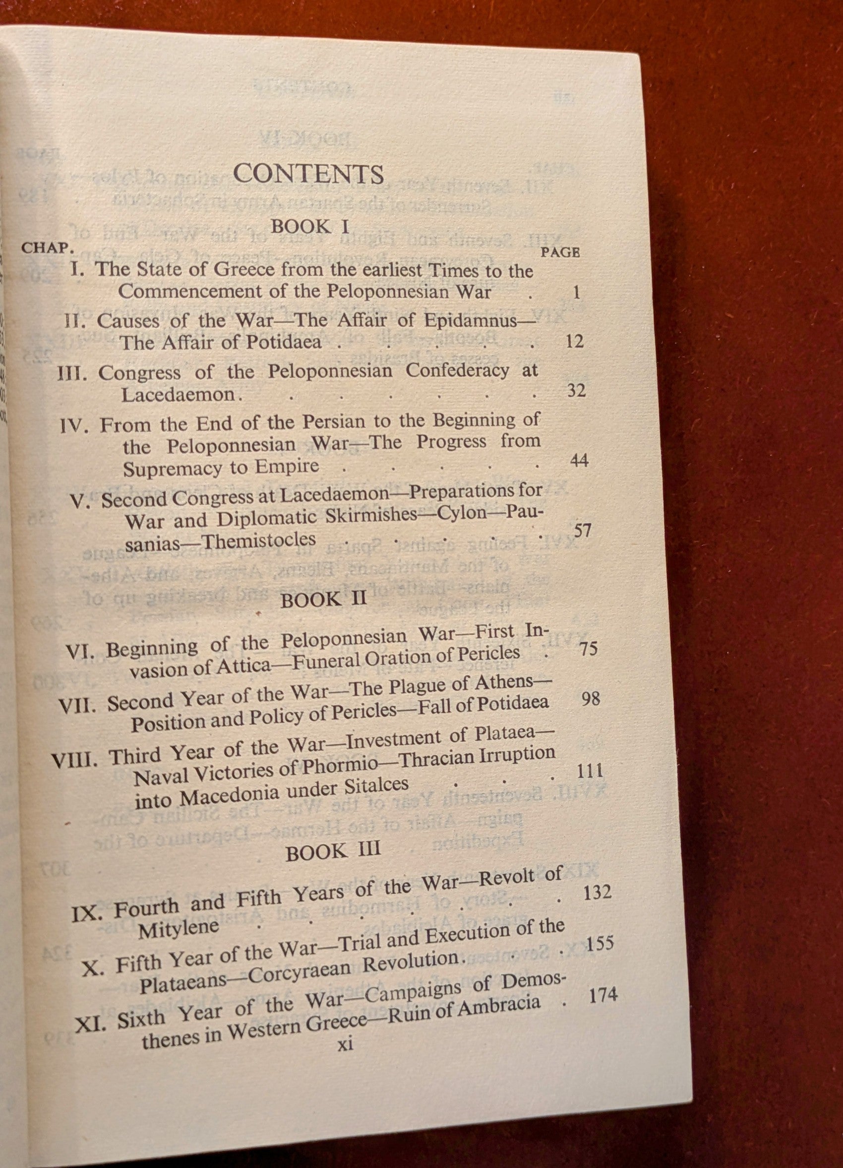 Everyman’s Library is a publishing house that reprints popular classics with style and quality. Founded in 1906 by master bookbinder turned publisher Joseph Dent. Thucydides’ “The History of the Peloponnesian War” Everyman’s Edition was first published in 1910. This copy is a 1948 reprint made in the UK with the 1874 translation by Richard Crawley.